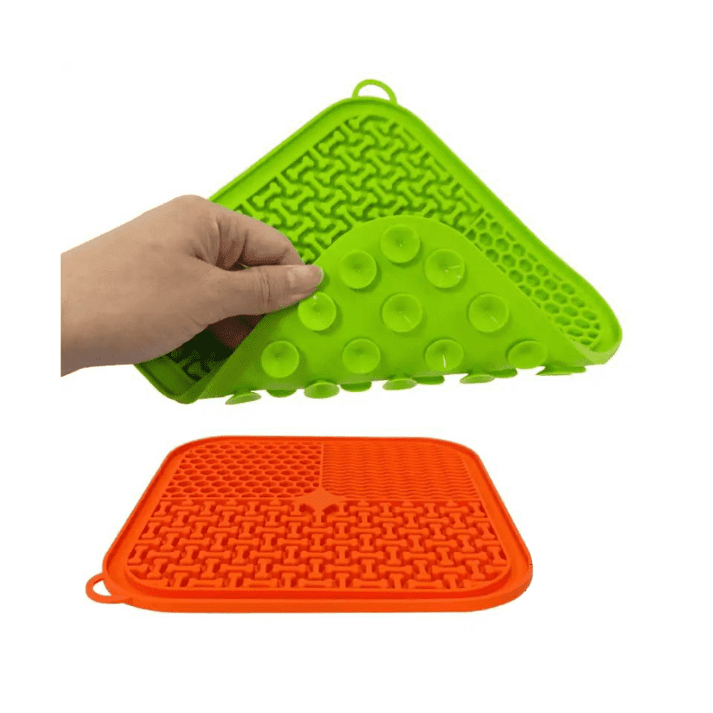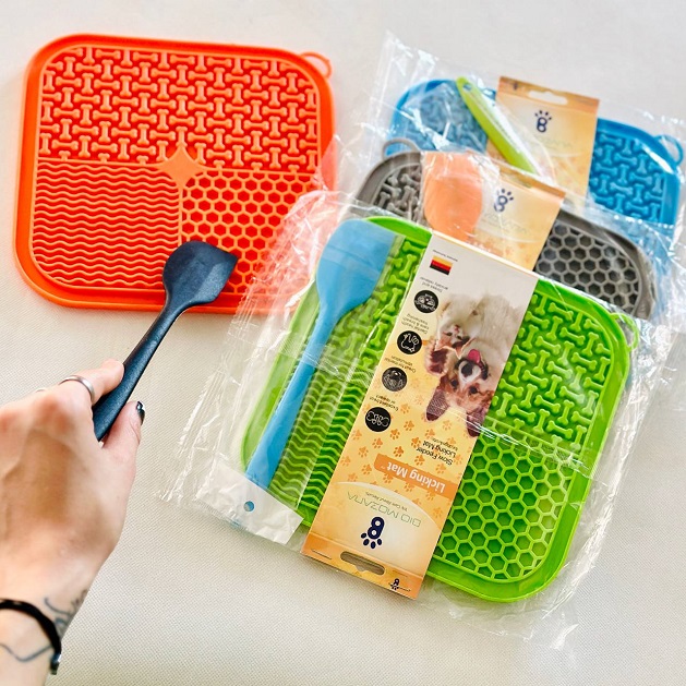 Silicone slow feeder lick mat for dogs and cats with silicone brush and spoon