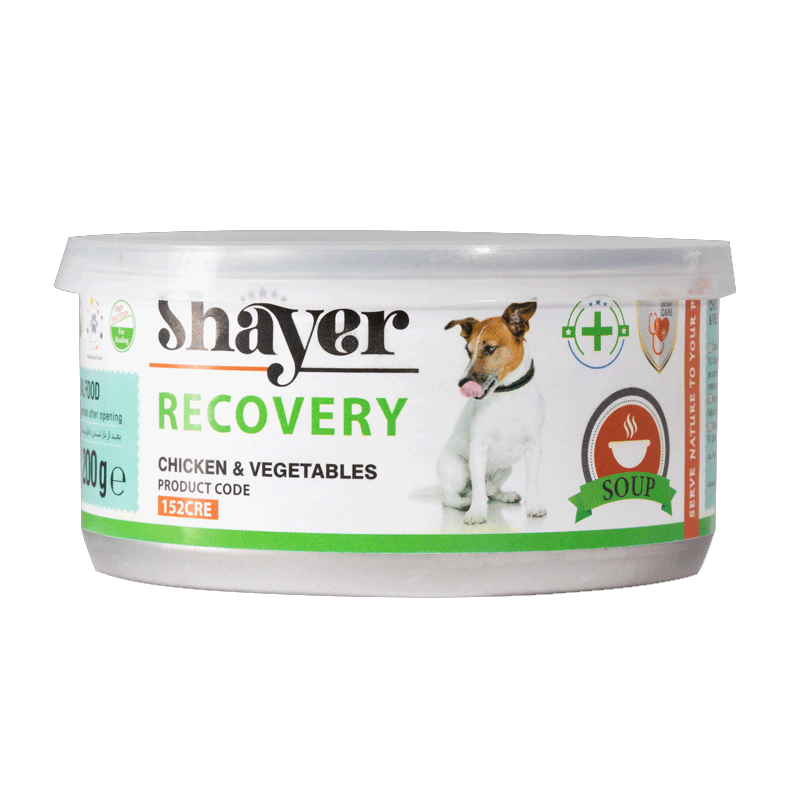 کنسرو ریکاوری سگ شایر با طعم مرغ و سبزیجات وزن ۲۰۰ گرم