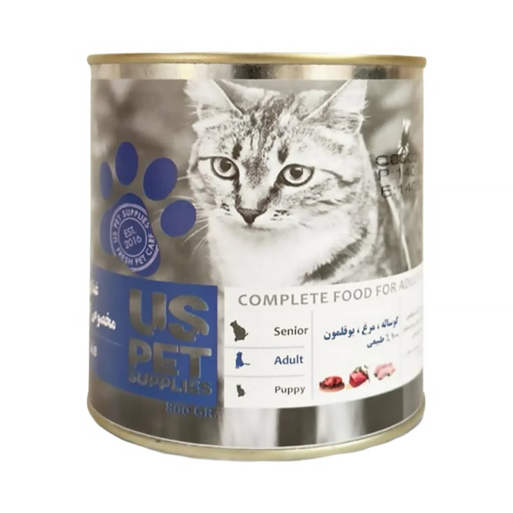 کنسرو گربه بالغ یو اس پت طعم گوشت گوساله, مرغ، بوقلمون 800 گرم